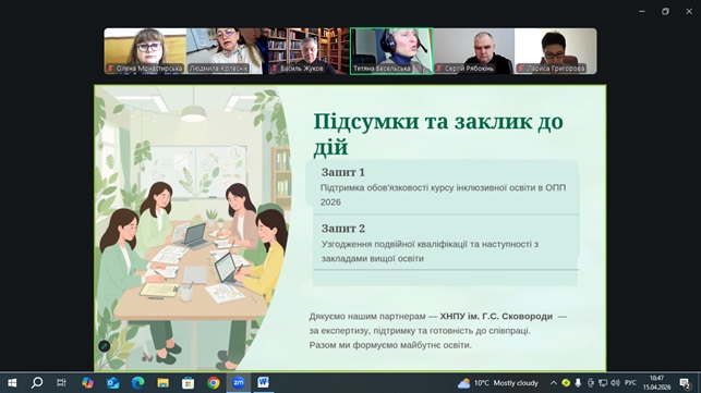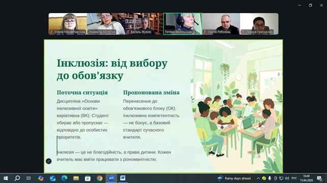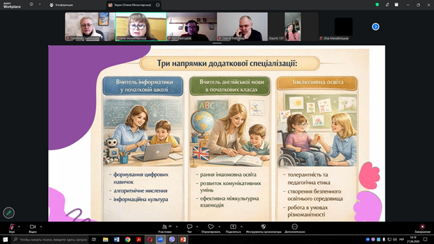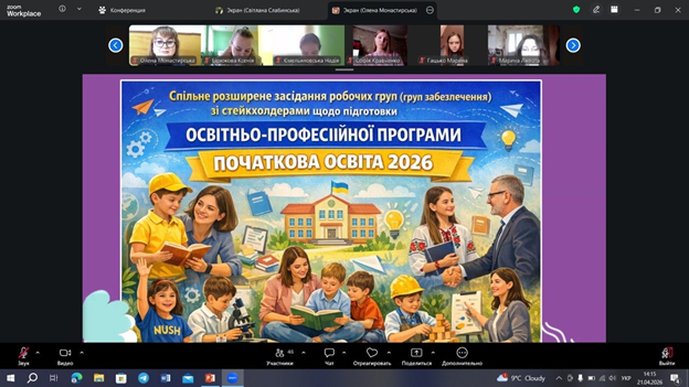 21 квітня 2026 року відбулося спільне розширене онлайн-засідання робочої групи (групи забезпечення) зі стейкхолдерами щодо представлення проєкту освітньо-професійної програми Початкова освіта – 2026.