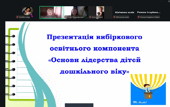 Викладач окремих методик спеціальності Дошкільна освіта Світлана ПАСІЧНИК презентувала вибірковий освітній компонент «Основи лідерства дітей дошкільного віку», де наголосила на необхідності вивчення освітнього компонента, що зумовлено сучасними реформами в освіті, які потребують соціально активних громадян, які здатні успішно взаємодіяти між собою, мають розвинені лідерські якості та компетентності, які допоможуть їм досягти очікуваних результатів. Вже з дошкільного дитинства важливо розвивати лідерський потенціал, що допоможе дитині можливість отримати досвід лідерства як прояв відповідальності, взаємодопомоги, толерантності, взаємоповаги тощо.