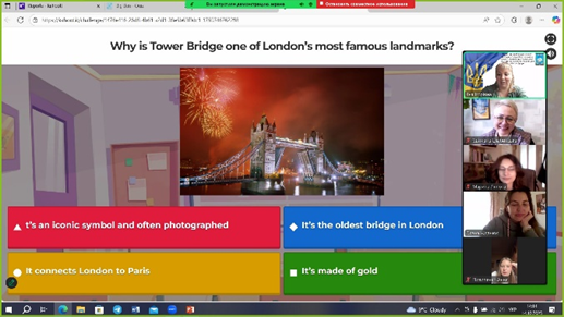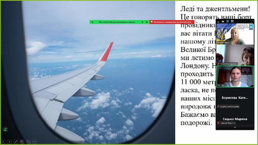 14 жовтня проведено позааудиторний захід «Віртуальна мандрівка до Великої Британії» (викладач Задорожня Я.І., групи П-11, П-21). Викладач англійської мови Задорожня Яна Ігорівна здійснила віртуальну мандрівку до далекої Великої Британії. Протягом якої здобувачі освіти мали змогу відвідати визначні місця Лондона – столиці Великої Британії. Залучила присутніх в атмосферу іншомовного спілкування та поповнила їх знання про культуру країни. Подорож відбулася віртуальним літаком на який всі отримали свої електронні білети. На цих білети були QR коди за якими були розміщені інтерактивні завдання. В ролі екскурсоводів виступали дівчата творчої групи з англійської мови «Надихай та говори».