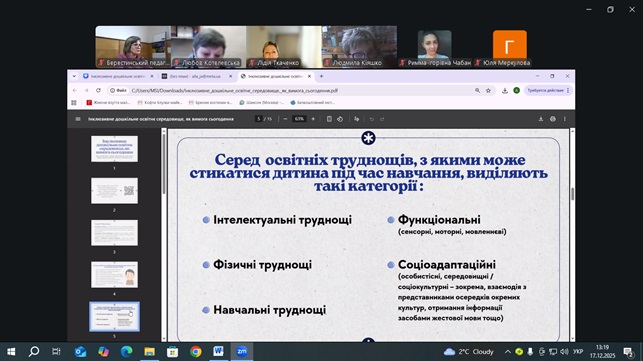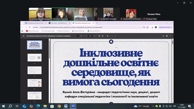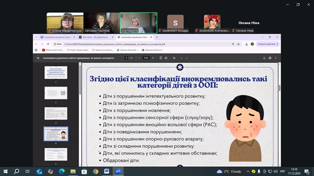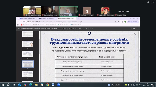 Метою гостьової лекції було ознайомити здобувачів освіти із змінами в нормативно-правових документах інклюзивної освіти, розширити уявлення щодо змісту та організації інклюзивного середовища в закладі дошкільної освіти.